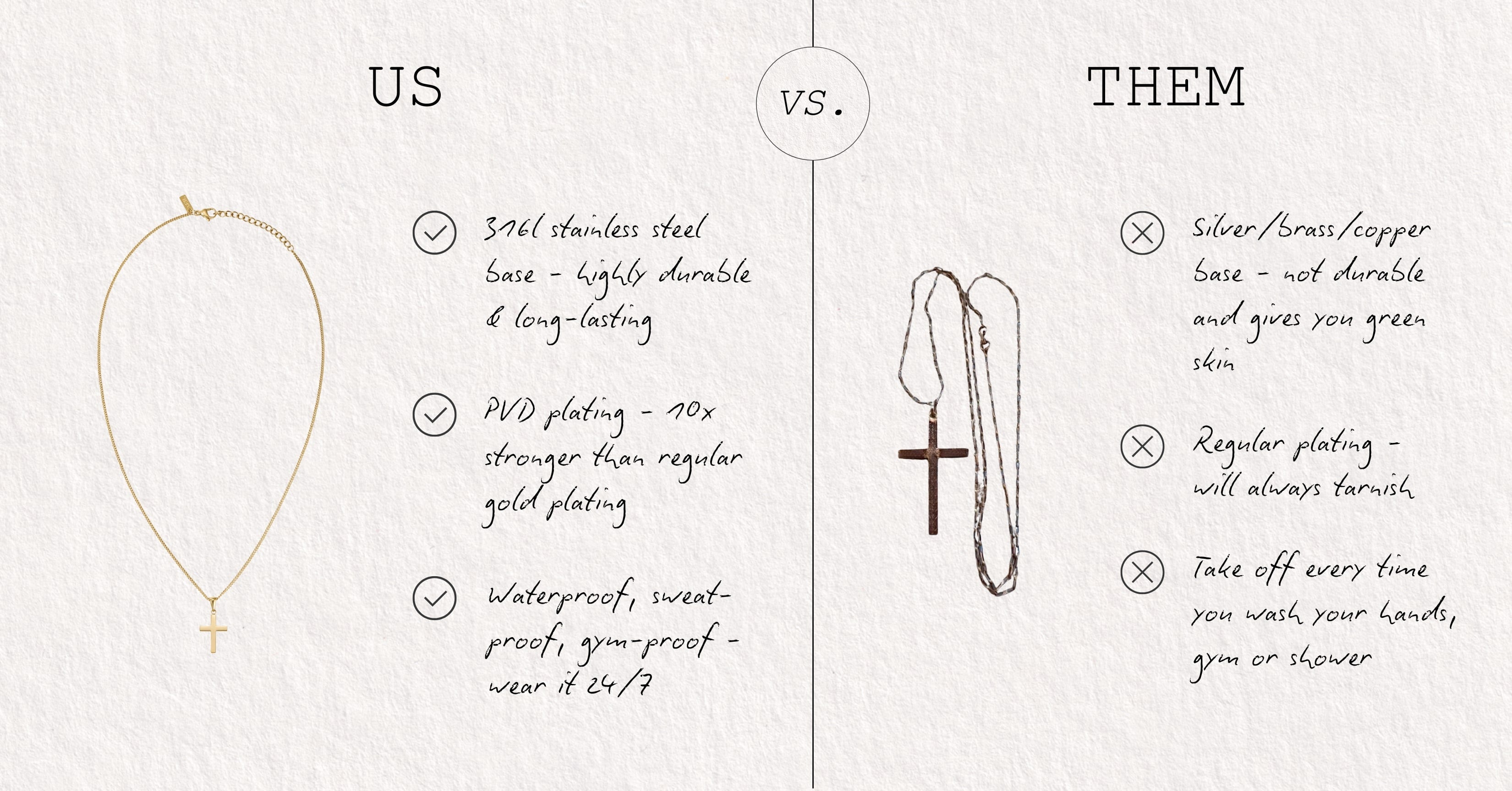 We make jewellery you never have to take off - waterproof, tarnish-proof and designed to outlast everything else in your rotation.