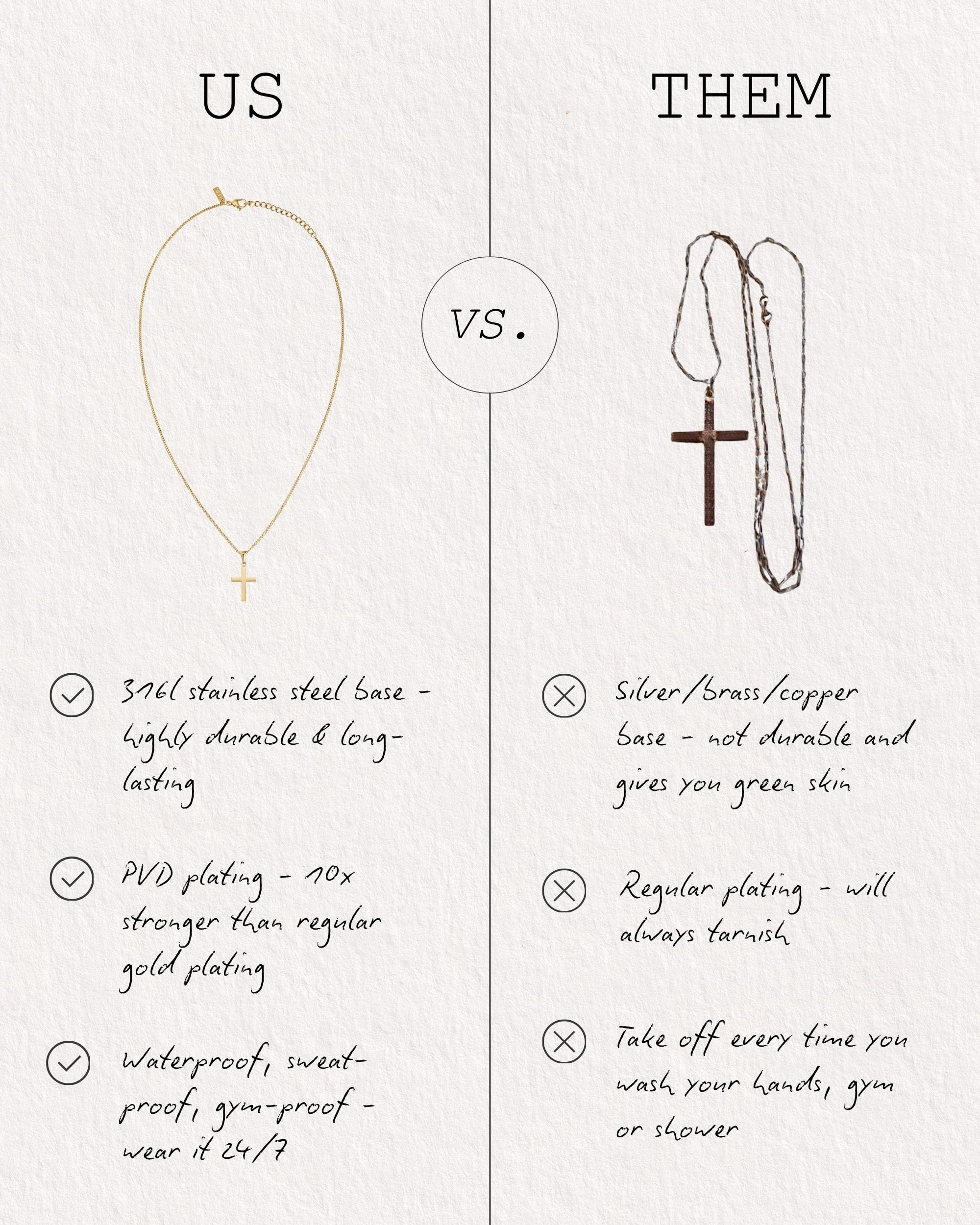 Most brands make jewellery you need to take off before you complete simple everyday tasks - like showering, going to the gym or washing hands - and if you don't those pieces will rust and tarnish.
