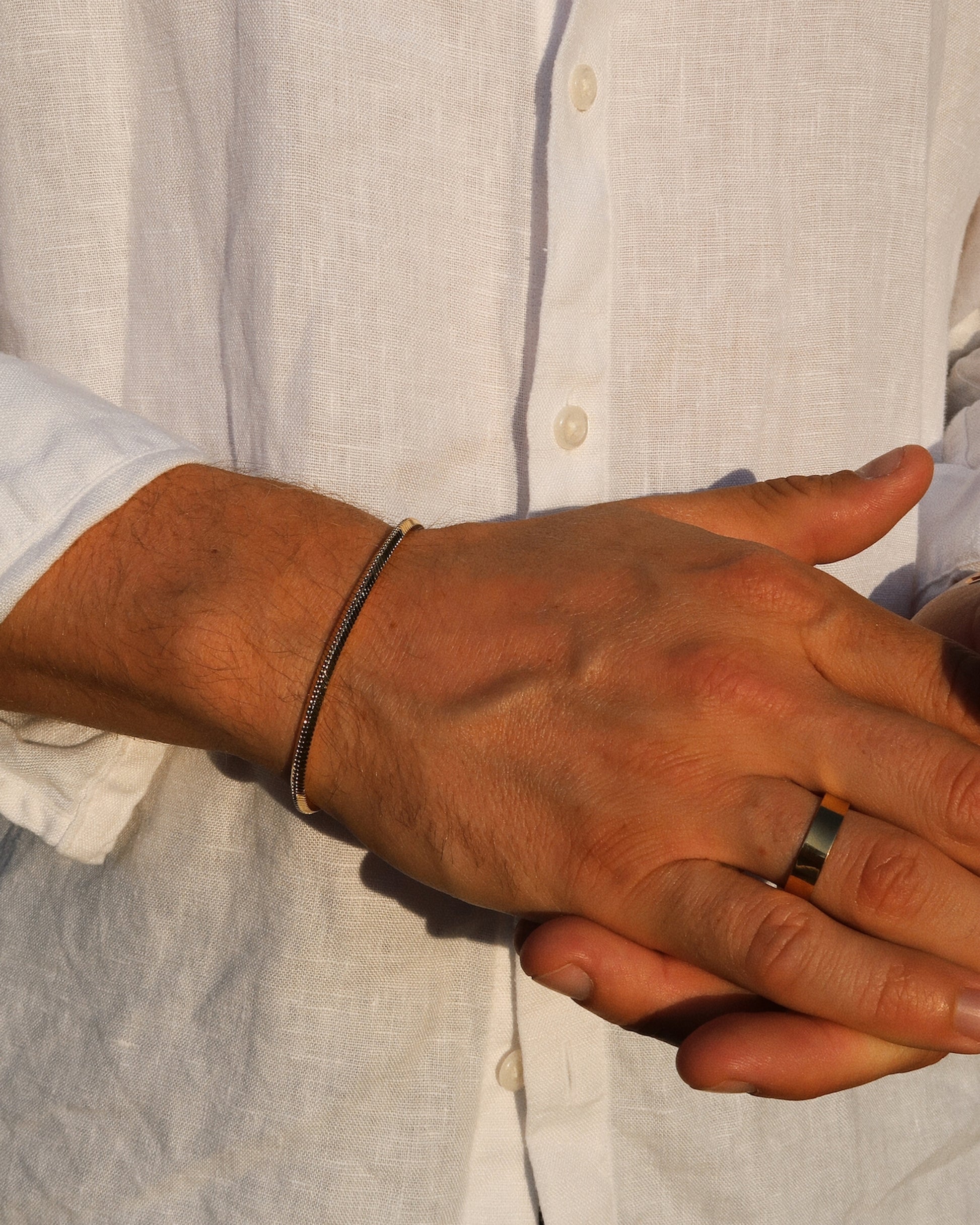 The Square bracelet’s crisp, square-profile links create a refined, contemporary look for everyday wear. Clean lines and a minimalist profile.